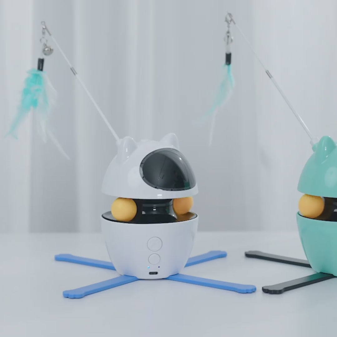 🎉 4 jouets en 1 : Ce jouet combine plume, pointeur laser automatique, boule rotative et purification d’ions négatifs ! 🪶💡 Stimulez l’instinct de chasse, de morsure et de grattage de votre chat avec une explosion de plaisir. Compact, il double le bonheur de votre compagnon ! 🐱